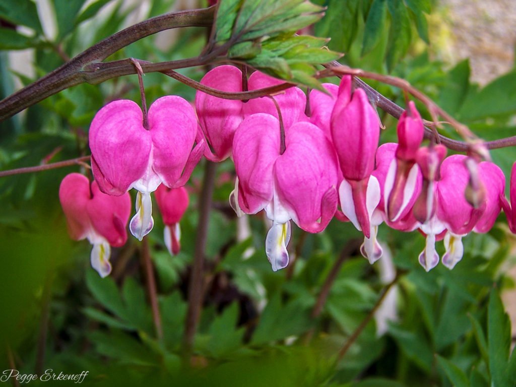 Dicentra spectabilis, commonly known as a bleeding heart, is a favorite perennial among gardeners. Two are planted in the garden near the entrance to our home. When early spring arrives, the bleeding hearts are quick to show lacey leaves and long stems of strawberry colored blossoms, some with as many as twenty dancing heart shapes on a stem. Each blossom is shaped like a heart. To pray with the image of bleeding heart flowers is to be reminded of how much suffering exists in our world. In full bloom, this stunning garden flower visually proclaims a need for love and concern poured out for the planet.