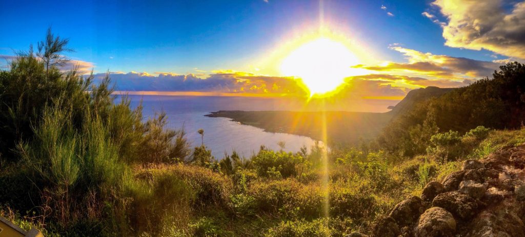 iPhone photo: There was more in the awakeness of this day that shook me awake: driving to the conference inching by flashing red lights, and seeing the head and upper body of a dead moose pinned beneath a car on the side of the road undid me, after also hearing about a deadly shooting in Philadelphia. I did something completely different in my session than I’d initially envisioned, and the circle with teachers activated hope and inspiration within me. Tonight, this 2015 sunrise from Kalaupapa on Molokai in the Hawaiian Island chain, at the highest sea cliffs in the world speaks to me. (I’ll go dream about why.) Wake up. #DisruptTheGap.