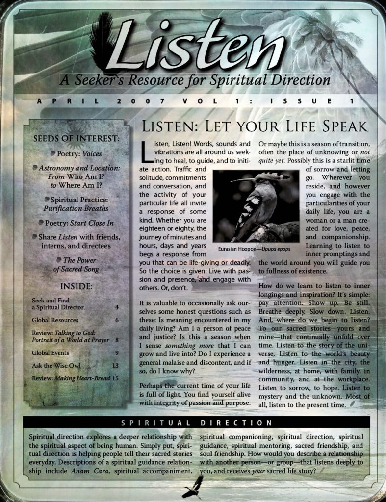 –Pegge (Bernecker) Erkeneff, Listen: A Seeker’s Resource for Spiritual Direction, Vol 1.1, April 2007